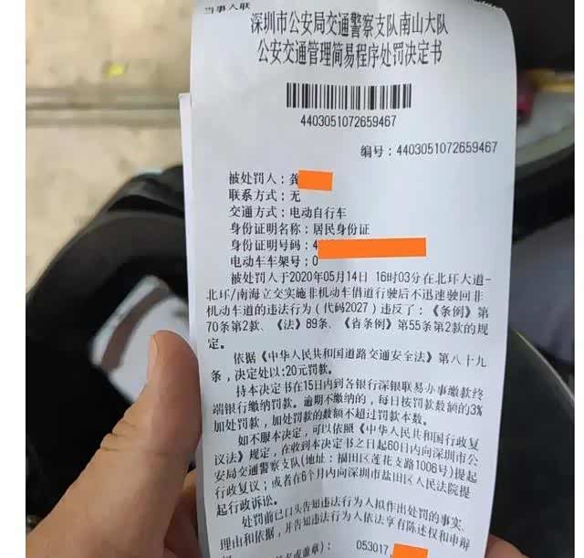 深圳小伙被交警罚款,大家要引以为戒遵守交通规则