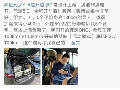 理想ONE首批车主真实油耗—— 高速8.5L-9.5L