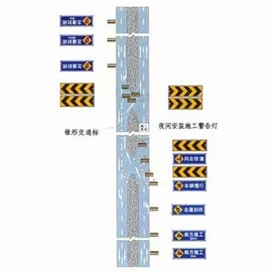 道路交通标志-警告标线-四车道缩减为双车道