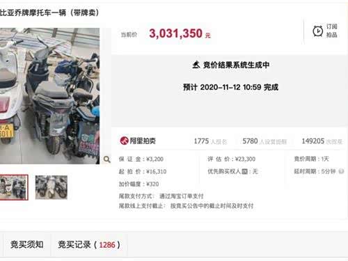 出价1286次!京A牌照二手摩托车以303万落槌,身价翻10倍