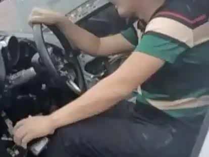 维修工坐着小马扎开车,交警拉开门瞬间震惊了