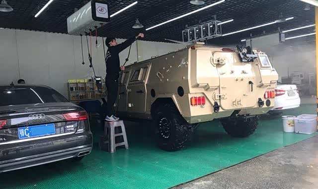 洗车店遇到东风猛士,一旁的黑色奥迪A6L驾驶员下车看了许久