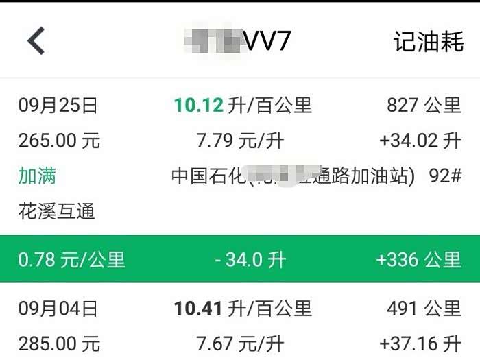 【VV7旗舰】数据说话-4次加油-对应19条里程记录的APP油耗计算