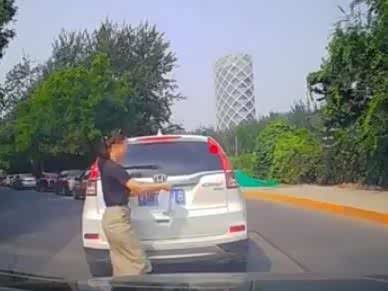 北京一女司机胆真大,为躲限号竟行驶途中下车遮挡号牌
