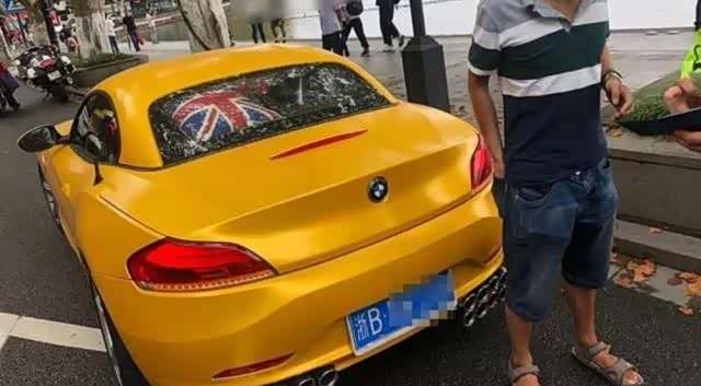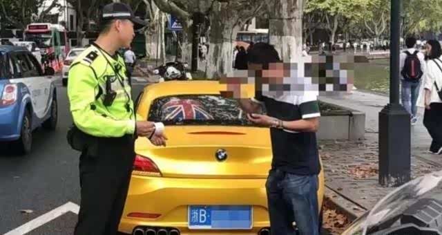 街头偶遇骚黄色宝马,尾部安装16根排气管,看到交警后舒服了!
