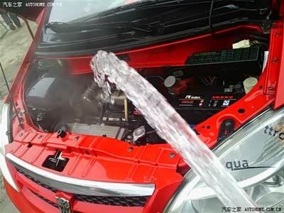 媳妇给奔奔洗车作业(冲洗发动机 上金属车标)