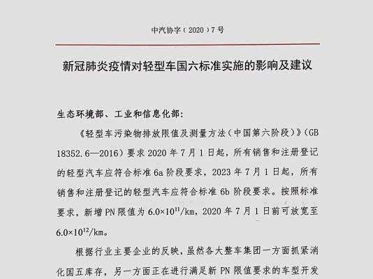 中汽协呼吁延缓实施国六PN限值!