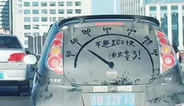 路遇一辆比亚迪,车速超慢看车后留字?!副驾驶的妹子笑坏了!!