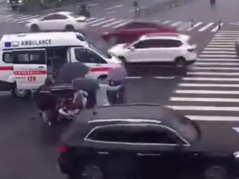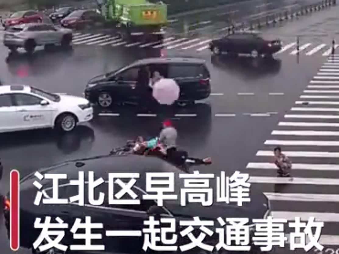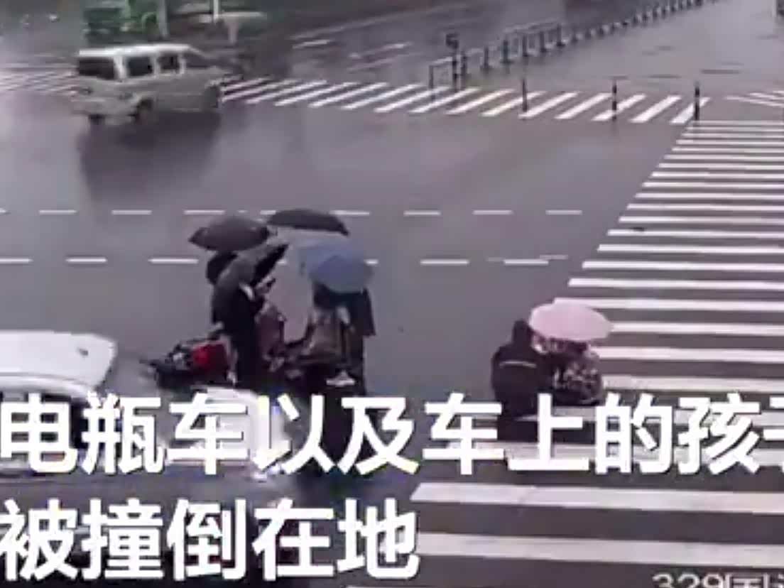 暖心一幕!电瓶车被撞倒市民雨中撑伞守护伤者