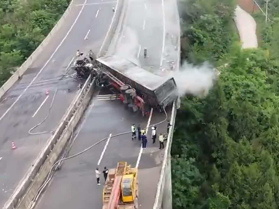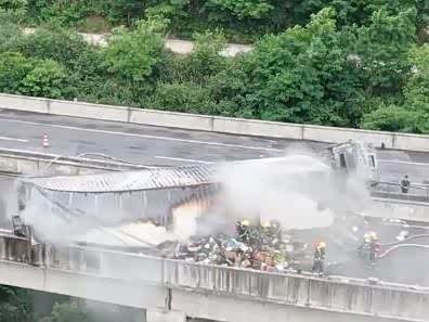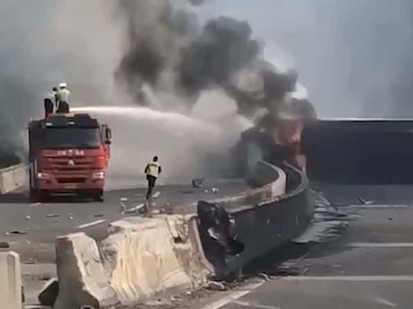 货车侧翻起火价值百万快递焚毁,消防:车里白酒、电池不断爆炸
