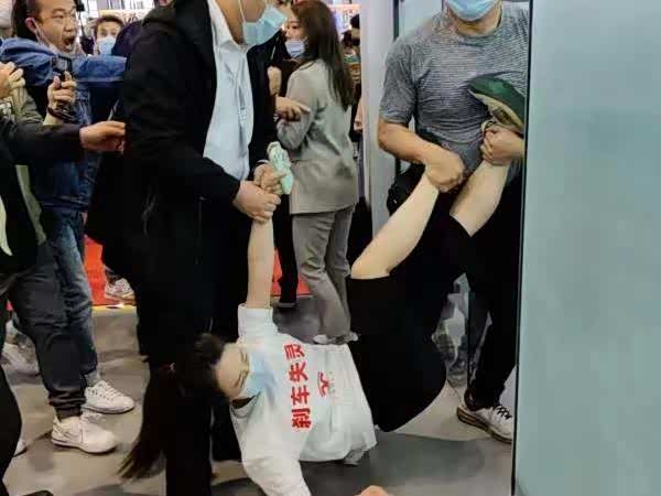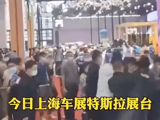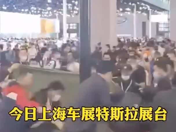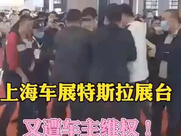 上海车展特斯拉展台又现维权!男子手持横幅被保安带走