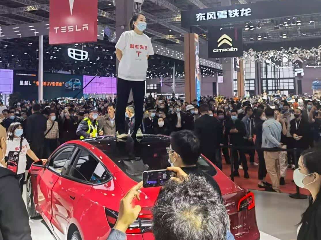 车展变维权!?特斯拉女车主车顶大喊:“刹车失灵!”官方回应来了