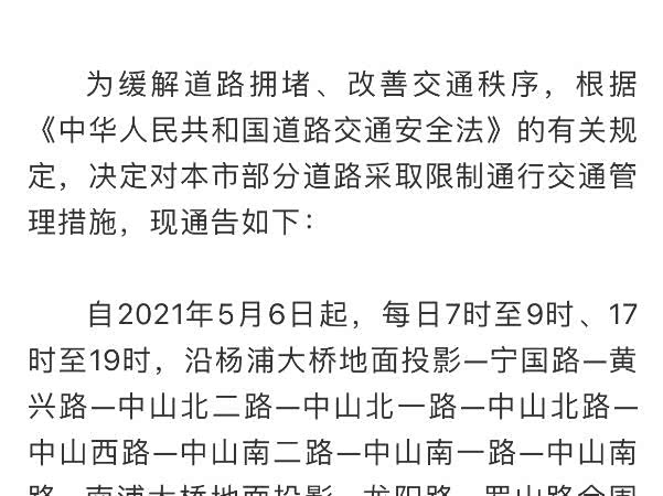 【重要提醒】上海市公安局发布外牌小客车道路限行最新通告