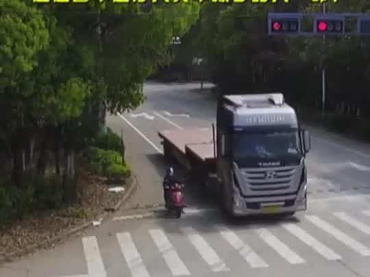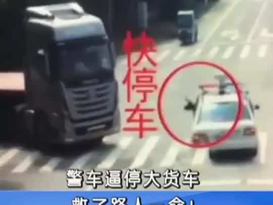 警车紧急逼停货车救下路人,路人衣服已被划破