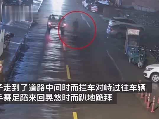 真是醉了!醉酒男子夜间马路中央跪拜拦车,最后……