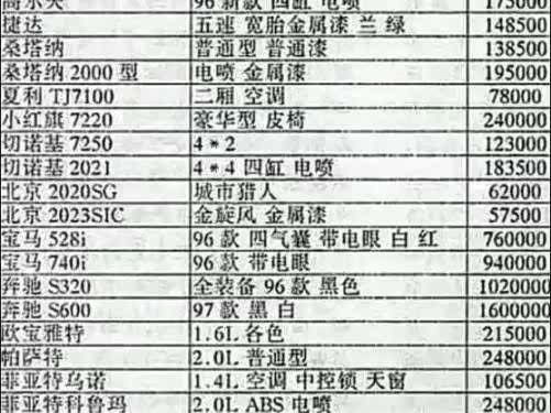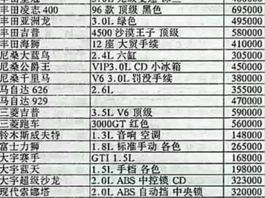 一份来自25年前的汽车销售价格表,不得不说当年的汽车市场也是挺繁荣的!