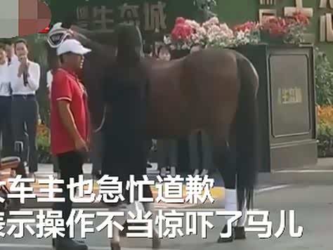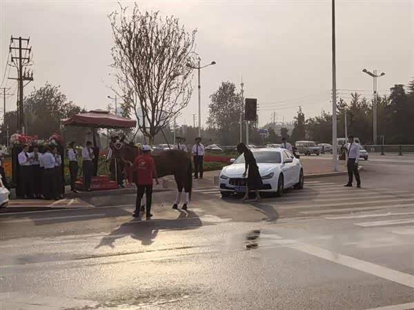 山东街头一匹马撞上玛莎拉蒂,车被踢出一个大坑