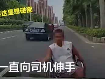 新型碰瓷招数:坐轮椅挡在车前,还一直向司机伸手