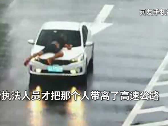 男子被顶引擎盖雨中高速疾驰30公里,下来那一刻腿都吓软了 !
