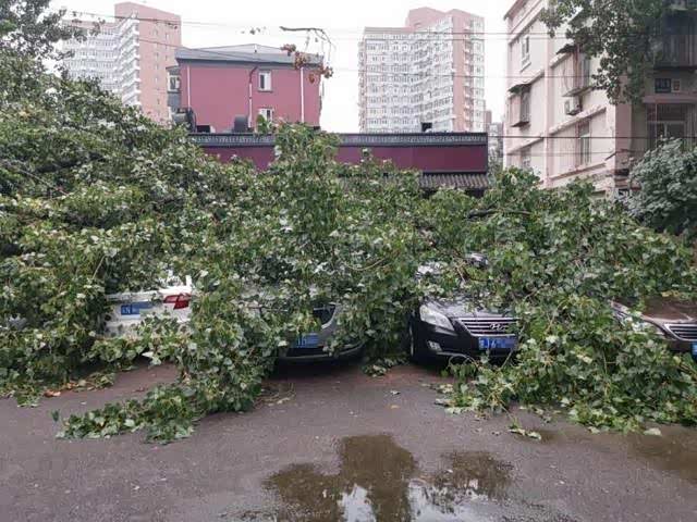 北京暴雨后大树倾倒,砸损七辆轿车