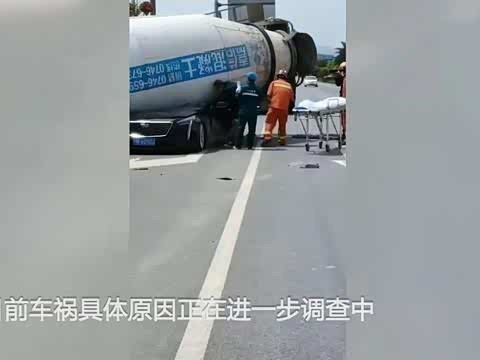 死神来了挡不住!搅拌车侧翻压扁凯迪拉克