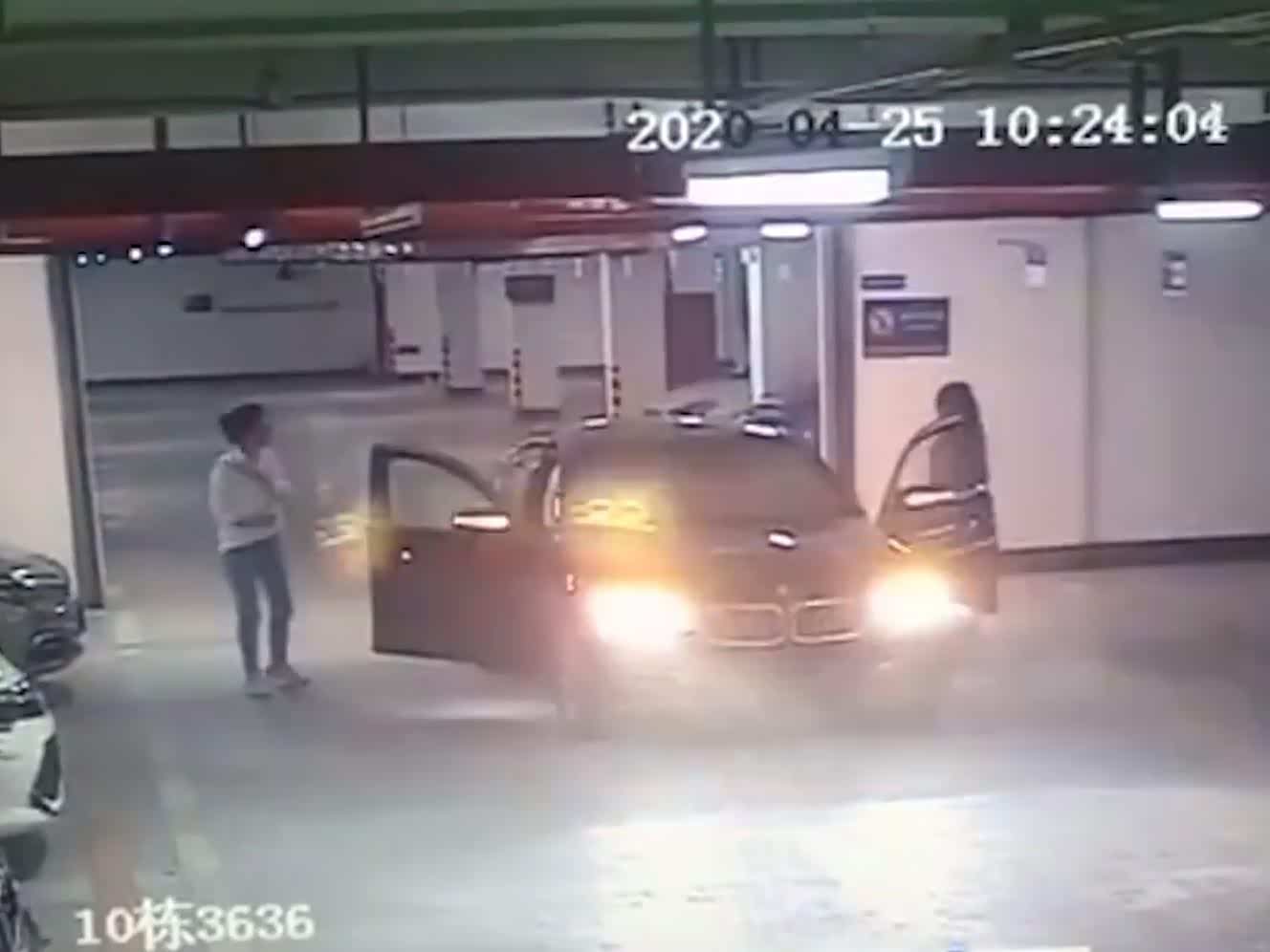 惊呆!未挂牌新宝马车过地库减速带安全气囊全部被引爆