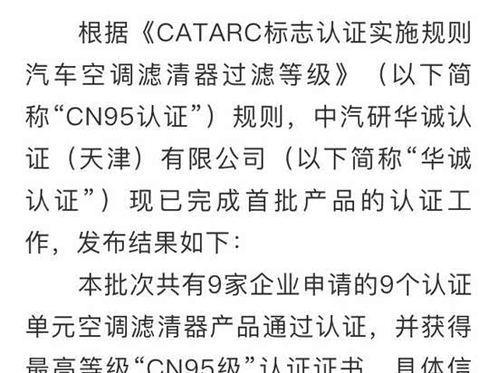 概念混淆?9家车企参与的CN95认证或不能有效过滤病毒,中汽研陷“质疑风波”