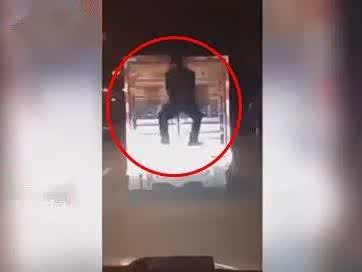 司机将同事挂车外开车行驶,称车内已满无法载人!