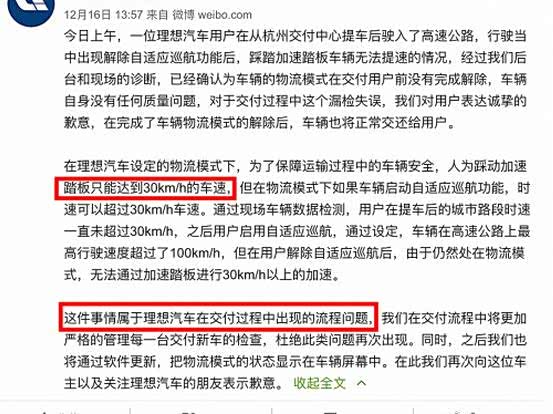 理想汽车交付失误:油门踩到底只有30迈!官方这样回应...