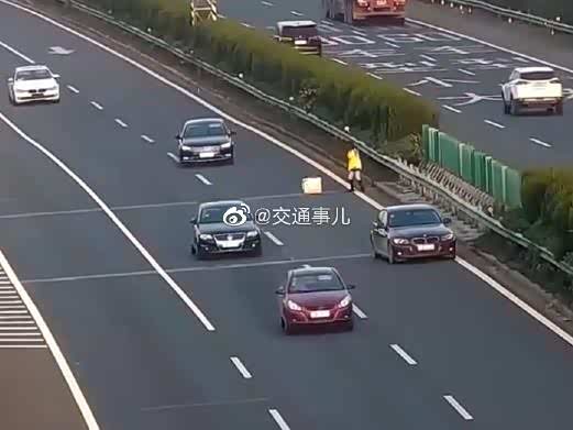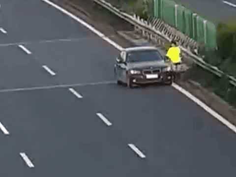 宝马女司机高速上没油,拿棉被当三角牌,竟不知道油表位置