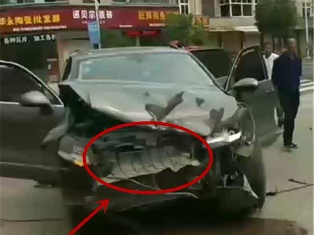 国产车不安全?7万吉利撞20万SUV,对方车头报废,吉利几乎没事
