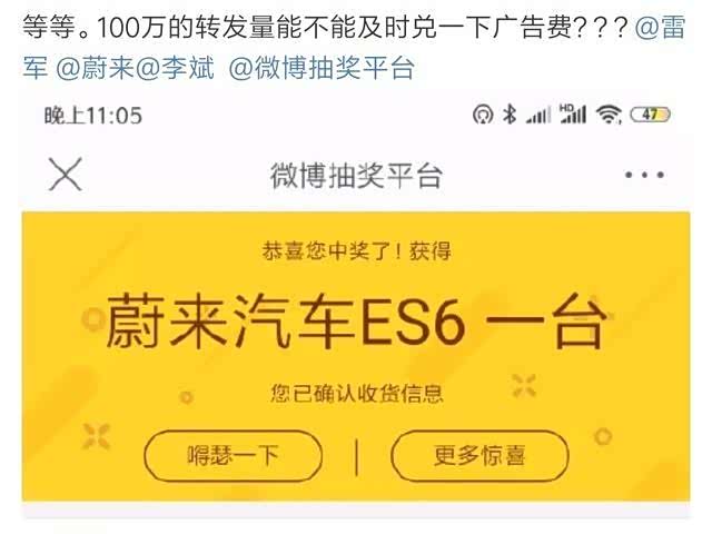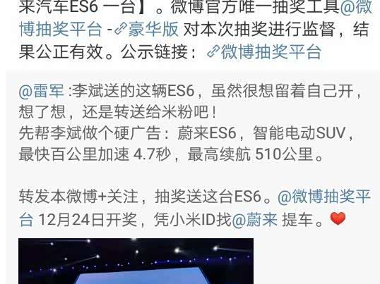 雷军抽奖送蔚来汽车引不满:开奖9个月至今未发奖,蔚来一拖再拖