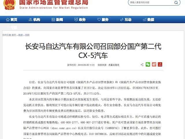 “熄火门”发酵!长安马自达召回77112台CX-5,车主仍惊魂未定!