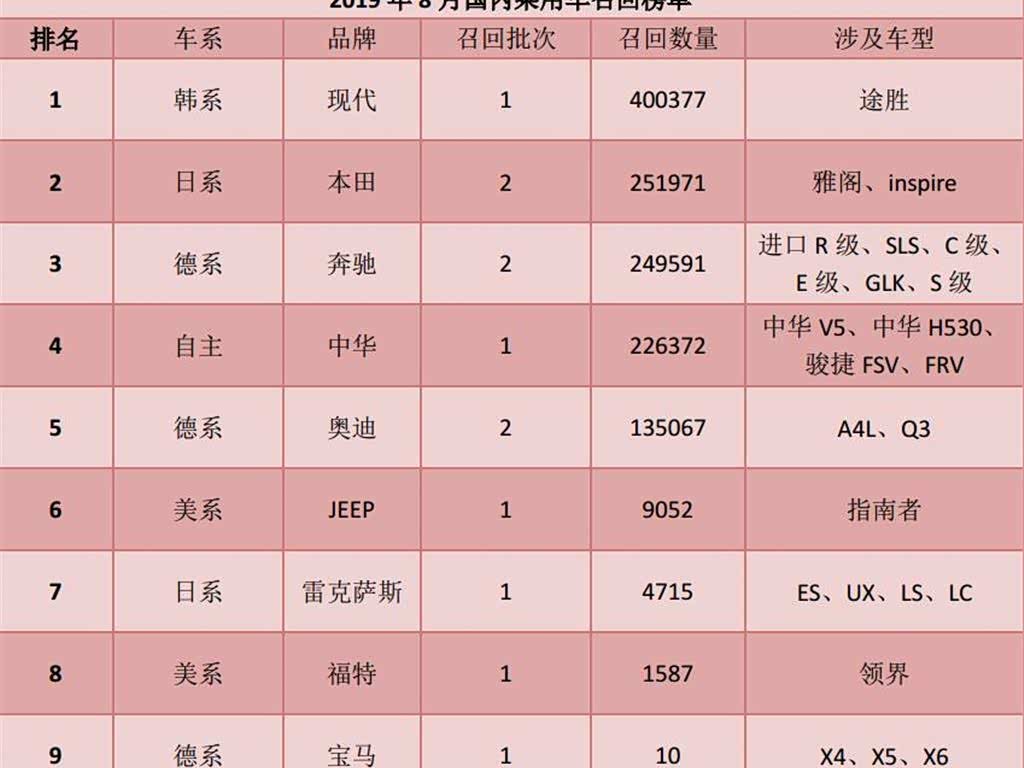 8月汽车召回创新高,你说车企越来越负责任了吗?
