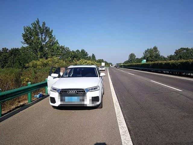 奥迪高速故障,女司机神操作“人体警示牌”,交警看完吓坏了!