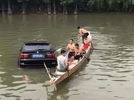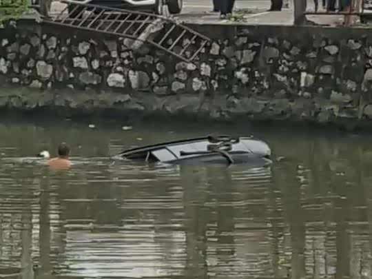 大连男子油门当刹车,宝马车冲入河底,引来了一队“大内高手”