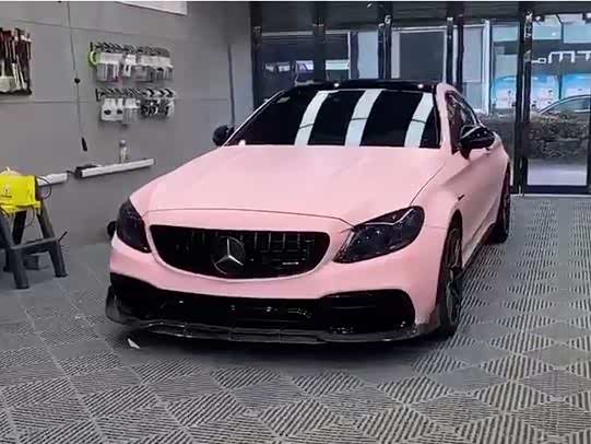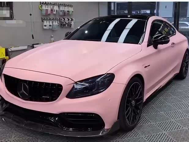 白富美买120万奔驰C63,次日就贴粉色车衣,引路人围观!