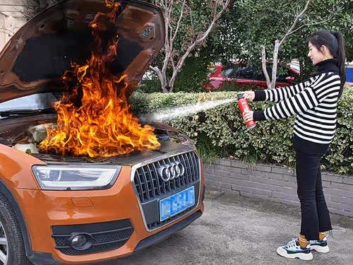 博越车主搭载便携式灭火器,操作示范告诉您突发状况怎么办!