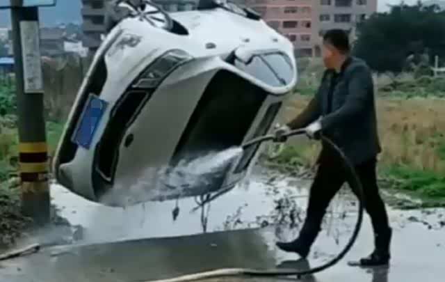洗车大叔火了,把车吊起来360度无死角冲刷,网友:洗完成泡水车